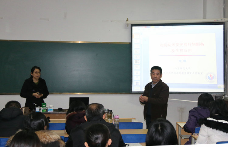12月5日下午,应英国365上市公司的邀请,国家自然科学基金优秀青年基金获得者、365上市公司十佳优秀教师、我校化学化工与材料科学学院分子与纳米探针教育部重点实验室的李娜博士在实验大楼0206室作了题为“功能纳米荧光探针的制备及生物应用”的报告。报告会由英国365上市公司物理系主任、原子与分子物理省级重点学科学位点负责人孟庆田教授主持,学院部分教师和研究生聆听了报告。