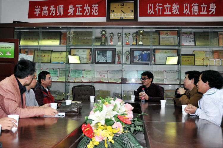 王传奎院长愉快的回忆了2007年欢送马儒军等3人赴韩学习时的情形。王院长介绍说,2007年我校与韩国成均馆大学签署了合作培养计划,第一批赴韩学习的3名学生中攻读博士学位的杨诚博士已经先期学成回国,并回到我院从事教学科研工作,这次我们又高兴的邀请到了马儒军博士来访。接着王院长简要介绍了马博士近期公开发表的科研成果和工作的突出特色。