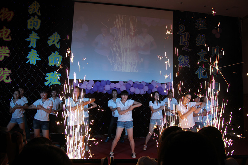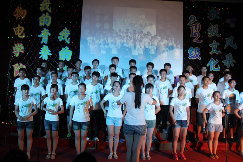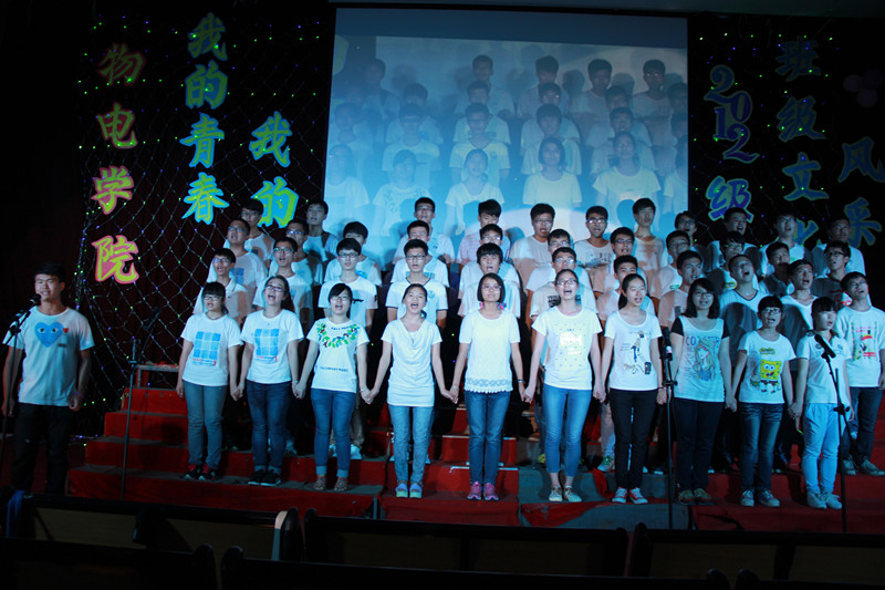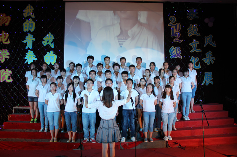 整个会场,彩灯闪烁,色彩斑斓,气氛热烈。在活动正式开始之前,杜伟作了热情洋溢的讲话。他强调了班级文化对于班级建设的重要作用,每一个班级应有能够反映自己班级特点的文化,他鼓励大家在班风、班训、班徽、班歌等班级文化元素的感召和凝聚下,凝神聚力,共同前行。他赞扬了同学们一个多月来为这次班级文化风采展的努力与付出,并祝活动圆满成功。紧接着是一段精彩的开场视频。视频中展示了同学们辛苦排练的过程,日常学习的场景,各种活动的画面,让在场观众感受到了2012级同学们散发的朝气与活力。接下来便是激动人心的班级自主展示环节。电子科学与技术班级拍摄的微电影《一路向梦》可谓创意独特。在微电影中,通过一个完整的长镜头,用同学们真实的登阶走路寓意他们的成长历程,赢得了全场师生的赞赏。物理卓越班表演的《卓物小剧场》更是别有用心。他们以夸张的动作、搞怪的表情再现了当初面试进卓越物理班的过程,以学习中真实的故事为素材为同学们展示了生活中卓越物理班的课堂,将现场气氛推向高潮。最值得一提的是他们再现的环校跑片段,一同学不慎跌倒同学们互相帮助,这让在场观众为之感动,并赢得了热烈的掌声。在精彩的自主展示环节过后是班级合唱环节。每个班级用一首歌唱出了班级文化,唱出了班级特色。舞台上他们服装整齐,眼神汇聚在一处,歌声嘹亮,气势如虹,充分体现了班级的向心力。最后,经过评委们评选,应用物理学班荣获“最佳才艺奖”,电子信息工程2班荣获“最佳团队奖”,电子科学与技术班荣获“最佳创意奖”,物理学卓越班荣获“最佳风采奖”,电子信息科学与技术班荣获“最佳表演奖”,物理学2班荣获“最佳人气奖”,光电信息工程班荣获“最佳风尚奖”,电子信息工程1班荣获“最佳活力奖”,物理学1班荣获“最佳展示奖”。