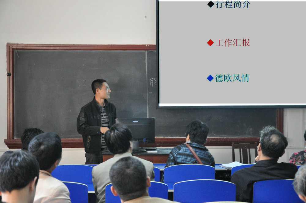 10月18日下午,我院教师胡贵超副教授在学院会议室为全院教师作了一场专题报告,汇报了今年2月--8月在德国德累斯顿工业大学的访学情况,并介绍了其在国外的生活、见闻与感想。