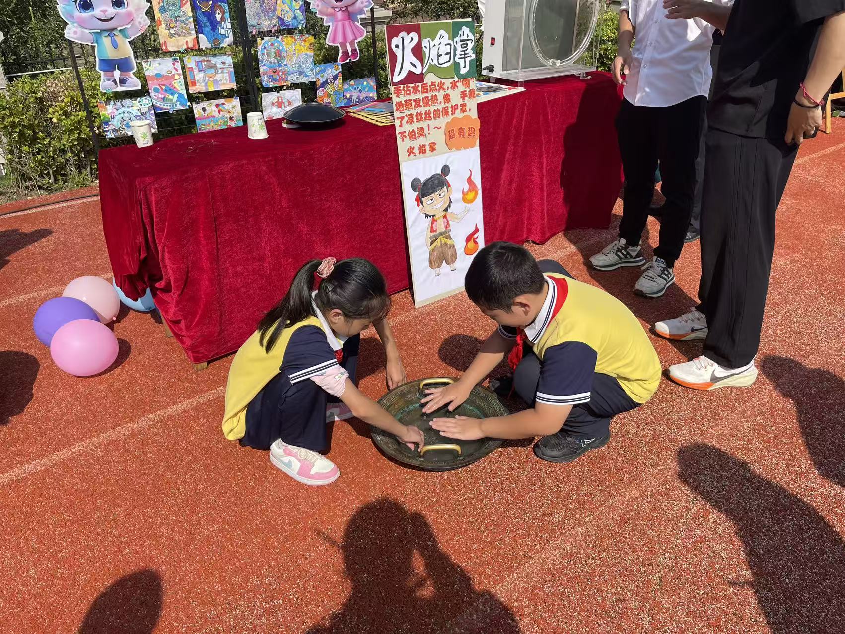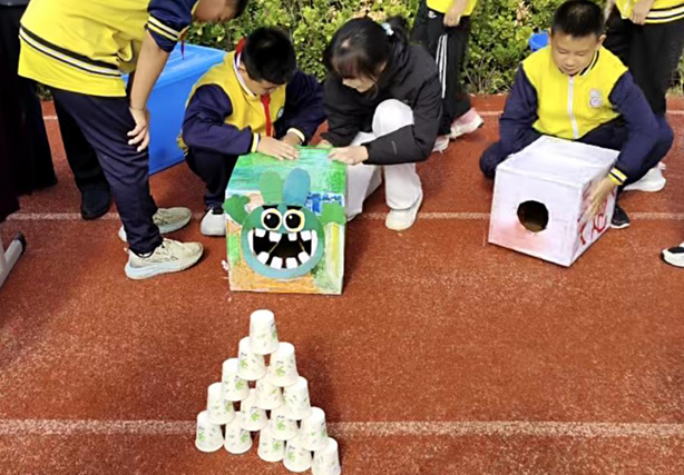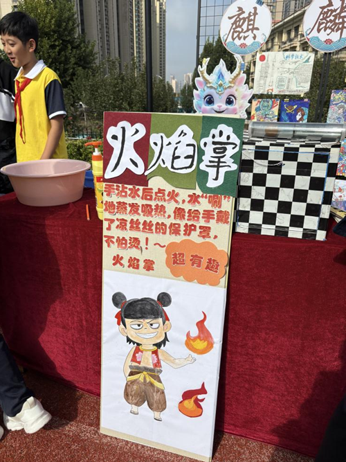 火焰掌实验更是将现场氛围推向高潮,在安全保障下,“火焰”在手掌舞动,孩子们既紧张又兴奋,认真聆听研究生讲解其中的化学与物理原理。摸不着的小兔子、消失的物品魔术箱,利用光学等原理,不断挑战孩子们的视觉与认知,大家围在一旁,叽叽喳喳地讨论着。鱼洗共振溅水花实验中,孩子们亲手触摸鱼洗,感受共振带来的水花飞溅,好奇与欣喜写满脸庞。会变色的小猪佩奇,随着条件变化改变色彩,吸引孩子们不断探究背后的科学机制。