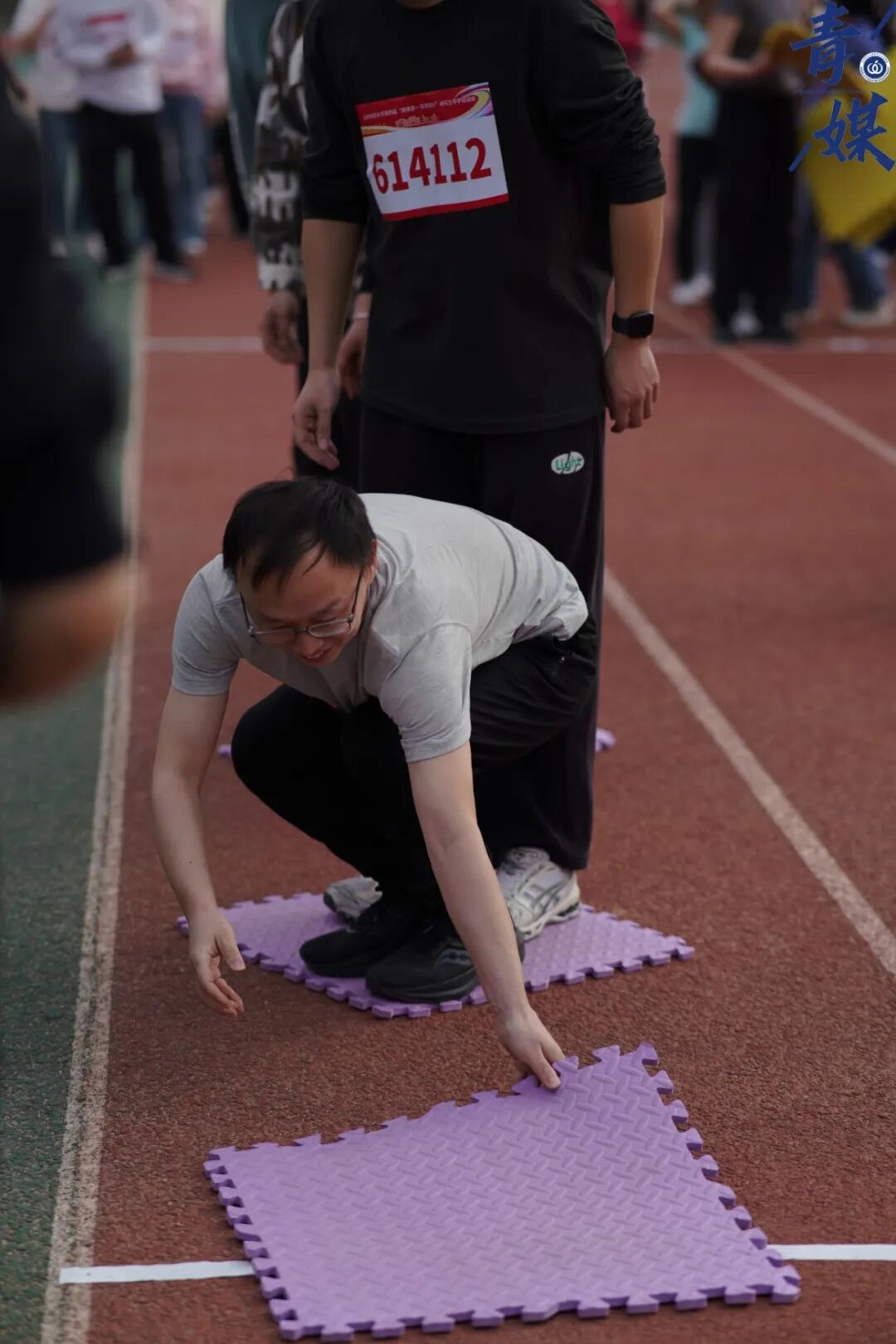 微风轻拂跑道,一条绶带腰间传递,往返接力奔跑,在穿梭中凝聚力量,在奔跑中传递默契。