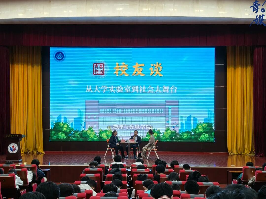 4月2日下午,物理与光电学院第二期“青春物语”校友谈活动在长清湖校区树蕙堂举行。活动特邀1996级本科生校友、德州市工业和信息化局长孙洪魁,2005级研究生校友、山东省环保发展集团绿碳科技咨询业务部部长王彩雁重返母校,以“从大学实验室到社会大舞台”为主题,围绕“迷茫与选择”“软实力培养”“物理思维迁移”等话题,与在校生展开了一场真诚、深入且充满启发的对话。学院党委副书记杜伟与师生200多人参与活动,校友谈由本科生刘业锦主持。