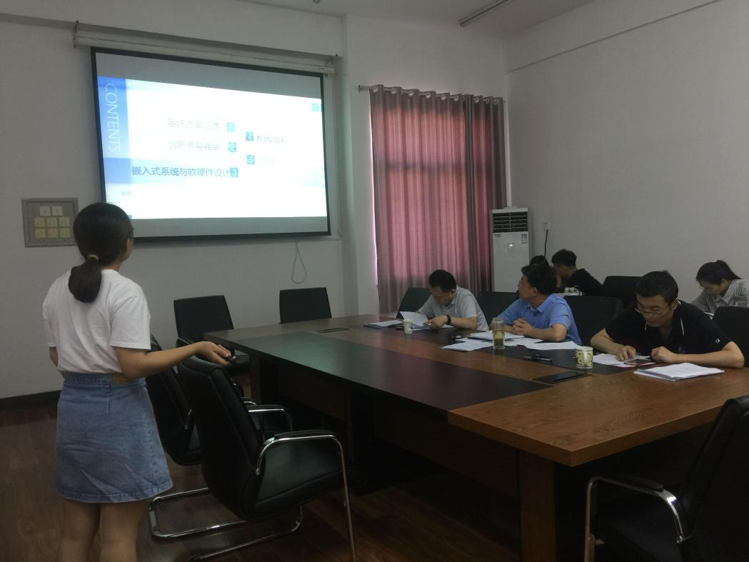 答辩会共有五个项目组参加,各项目组负责人根据小组项目进展和发展前景就以PPT的形式进行了现场展示。项目组答辩同学们有条不紊的讲解,无不体现着他们所投入的精力与时间,给评委老师们留下了深刻的印象。其中来自物电学院17级孙锦锦小组的项目——基于人工智能的多功能老年陪护机器人,此项目将未来科技与当今社会出现的老年群体问题充分结合,具有较为广阔的应用前景。同样17级郭小蕊小组从作品创新点、产品简介、设计原理、技术优势和项目规划方案等方面进行介绍,评委老师指出该项目已具有初步的商业模式,发展前景广阔。答辩会上,各评委老师分别就每个团队研究项目进行提问,并指出同学们的不足和纰漏之处,为大家下一步的工作提出了建议。最后经过评委团的讨论,此次校内赛共有五支队伍代表学校参加全国研究生电子设计大赛华北分赛区比赛。