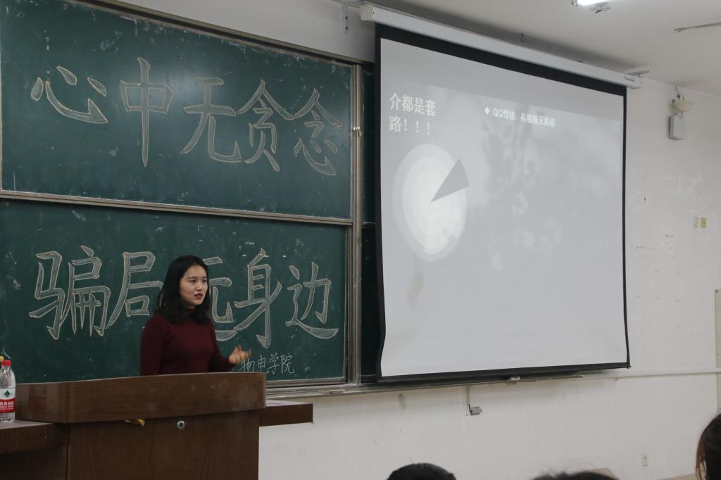 为进一步增强学生的安全意识,11月6日,英国365上市公司于长清湖校区文渊楼C区236教室举办《面对校园诈骗,我该怎么办》安全讲座。2017级辅导员方芳主持本次讲座,为同学们介绍关于校园诈骗的问题。2018级班长团支书及部分学生会成员参加本次讲座。