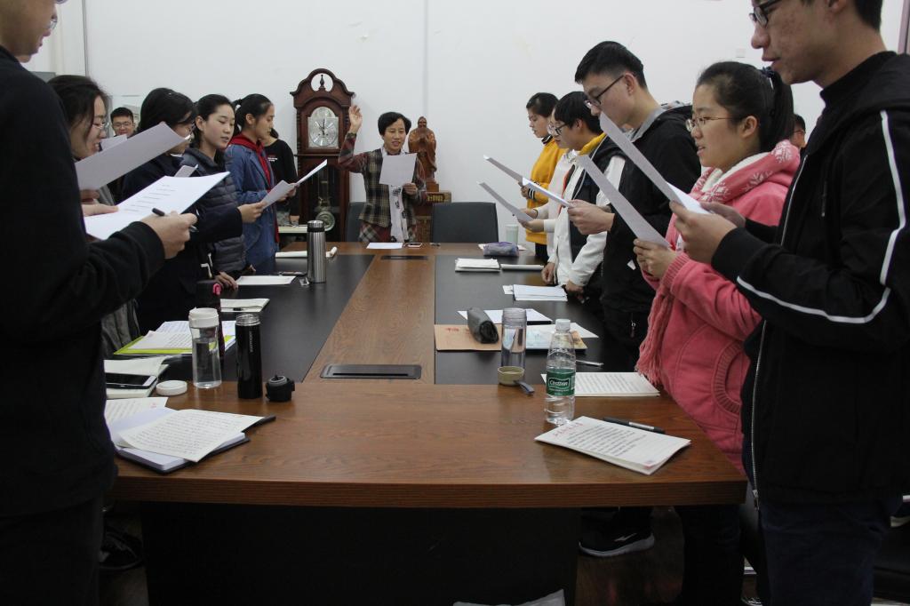 最后胡桂香向在场同学介绍《国际歌》的创作背景和里面所传达的共产党人精神,待同学们了解后,胡书记带领同学们一起齐声高唱国际歌,在气势宏大的高潮中,同学们透过歌词更加深入的体会到共产主义的信念与使命。