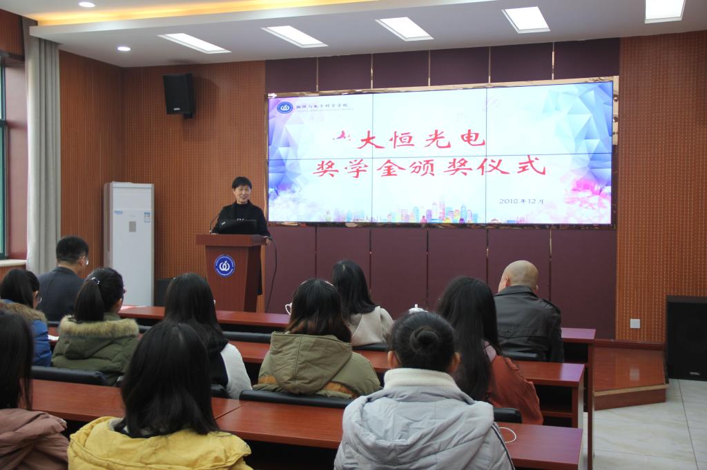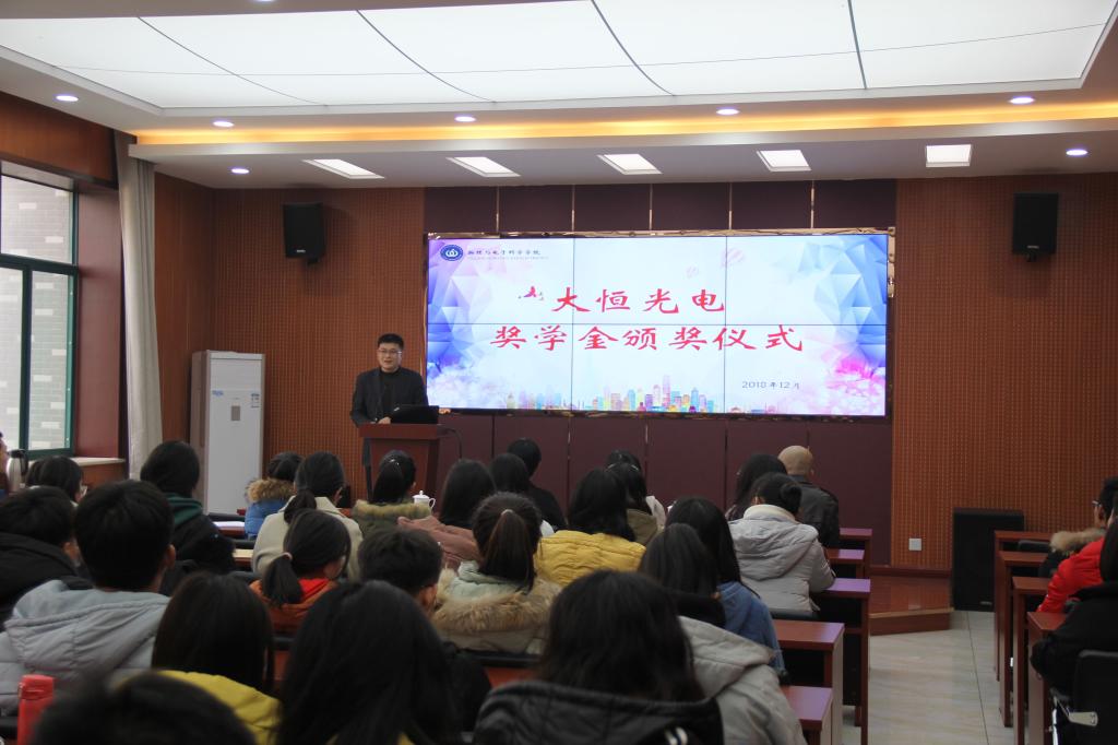 12月21日,英国365上市公司于长清湖校区文澜楼A区347报告厅举行大恒光电奖学金颁奖仪式。大恒新纪元科技股份有限公司国内业务经理李秀芳,山东区业务经理孙建强,物电学院党委副书记万金凤,出席本次颁奖仪式。5名大恒光电奖学金获得者和2017级光电信息科学与工程专业同学参加了活动。仪式由团委书记杜伟主持。