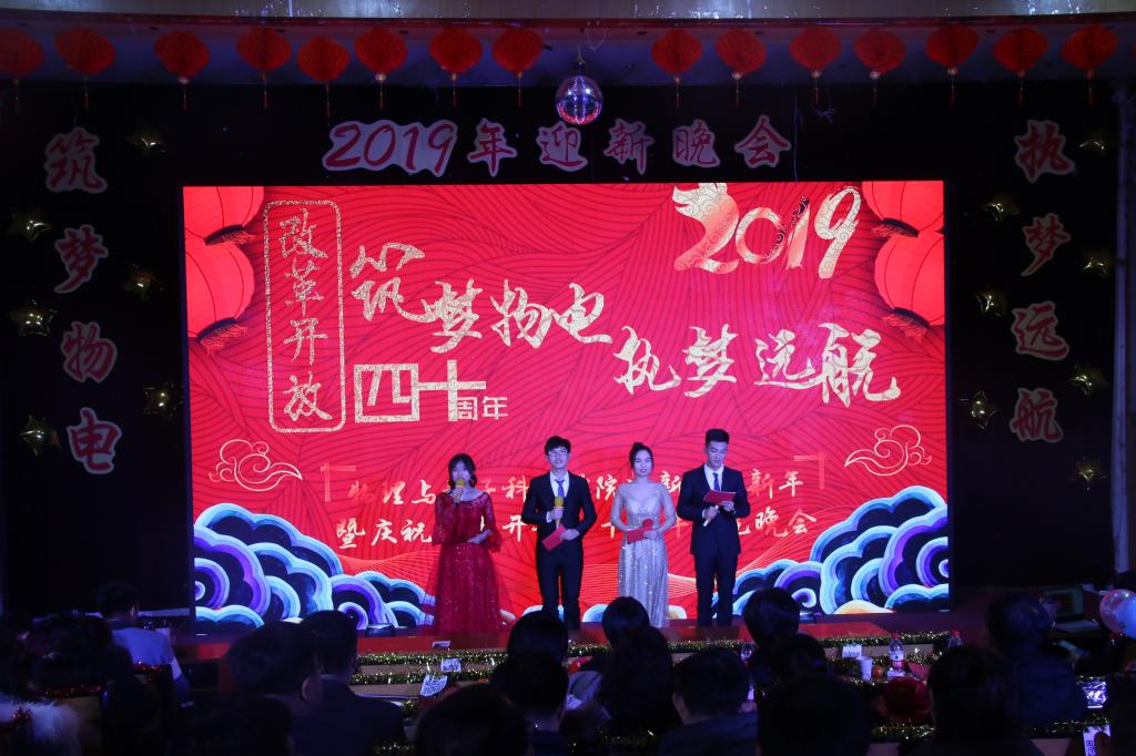 开场一首《逆战》,气势如虹,瞬间点燃全场激情,在全场的欢呼声中,爵士舞《forever young》精彩上演,动感的歌曲遇见动人的舞蹈,尽情欢笑,永远年轻。小小少年没有烦恼,但成长总是无可避免,烦恼也总是如影随形,程昊淼,穆海龙携手带来的相声表演《成长的烦恼》,以一种诙谐搞笑的方式一一展现童年的美好回忆。古筝演奏曲《战台风》曲调气势磅礴,展现劳动人民勇敢拼搏的无畏精神。一首《红旗飘飘》体现物电学子满腔爱国热情。电子系教师从讲台走上舞台,为全场观众带来大合唱《我们走在大路上》。研究生五导团队师生献唱《阳光路上》,学院工会、团委老师带来朗诵《盛世中国》,同声歌颂盛世中国,改革开放四十年沧海桑田,四十年春潮不息,中华民族正行走在伟大复兴之路上。在视频《祝福时刻》中,学院领导老师的真切祝福与温馨话语,令现场观众心生暖意,备受鼓舞。改革春风吹满大地,一首《春暖花开》将春天温暖气息送到观众面前,而新疆特色舞蹈《Reyhan》则令全场领略到新疆美妙的异域风情。晚会中间穿插的特别环节——第五届大学生学术科技节与“博视雅”奖学金颁奖典礼,将物电学院人文和科技情怀展现的淋漓尽致。节目最后,文艺部全体同学带来合唱《梦的方向》,晚会在美妙的歌声中完美落幕。