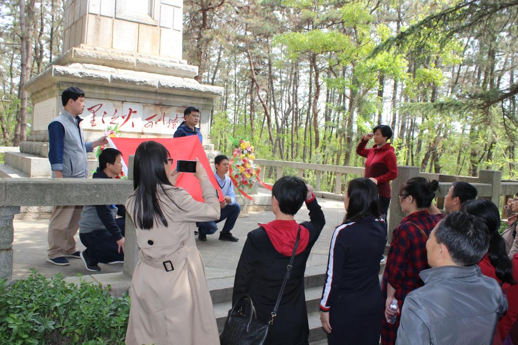 5月11日上午,大家首先来到天福山起义纪念馆和红色胶东馆。在现场讲解员的引领下,大家认真学习了胶东党组织的发展历程、天福山起义的伟大壮举和胶东共产党人为争取民族独立,前仆后继、浴血抗争的感人事迹。1937年12月24日,胶东特委书记理琪等同志领导发动了威震胶东的抗日武装起义——天福山起义,打响了胶东抗战第一枪。这支军队如燎原之火,在战斗中不断发展壮大,成为中国地方抗日战场上的一支劲旅,留下了为强我中华奋斗不息、为抗日救国不惜牺牲、在艰难逆境中勇于奋进的“天福山精神”。在天福山起义纪念塔前,老师们怀着无比崇敬的心情敬献了花篮。胡桂香带领全体党员重温入党誓词,铿锵有力的宣誓声在天福山久久回荡。