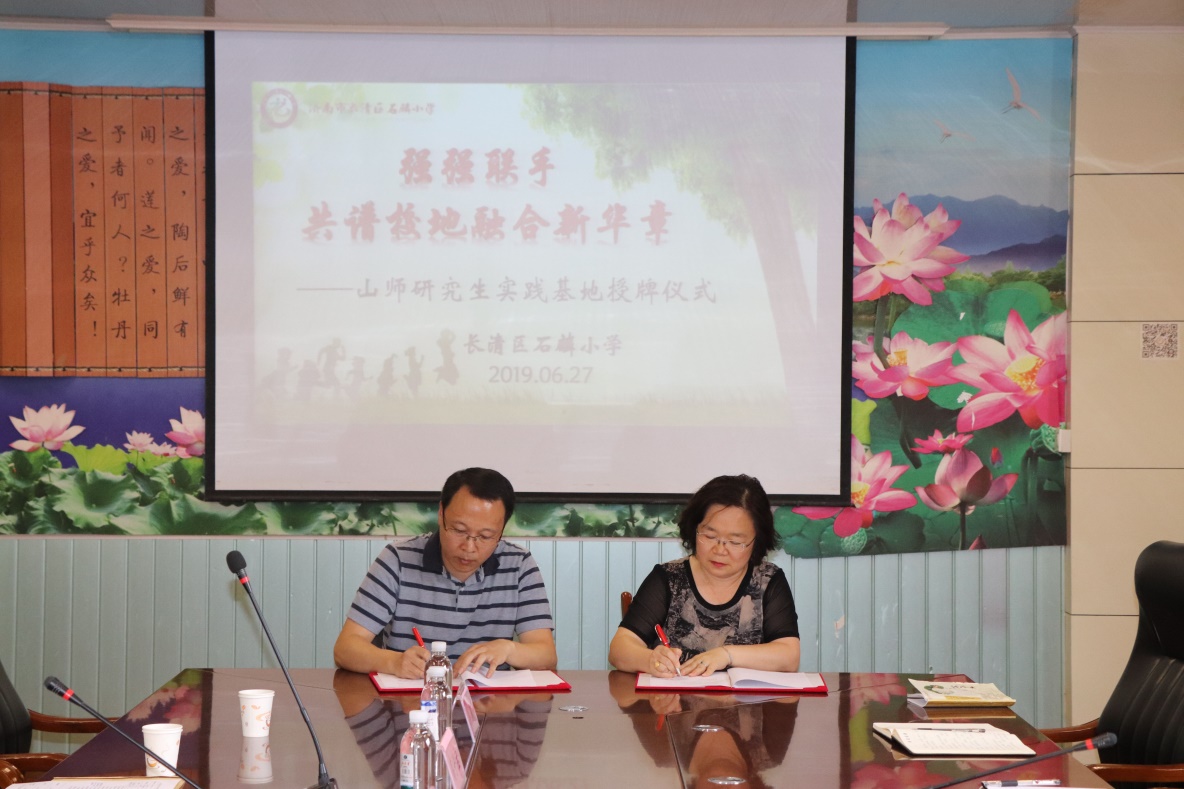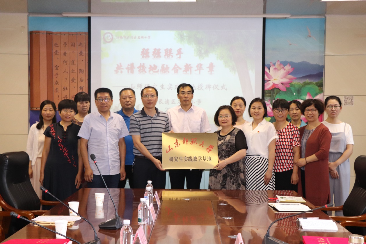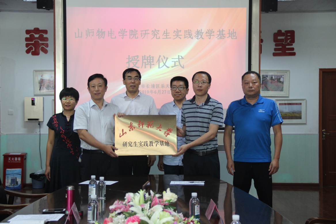 2019年6月27日上午,365上市公司研究生实践基地授牌仪式在长清区石麟小学和长清区乐天小学举行。物电学院宋玉志副院长、研究生教育办公室主任肖斌、科学与技术教育学位点负责人高守宝、长清区教育和体育局巨传祯副局长、区教研室王桂芹教研员、石麟小学杜建青校长、乐天小学张庆跃校长等出席了授牌仪式。