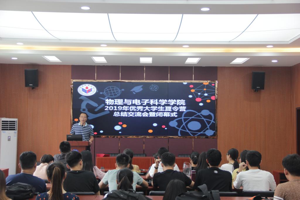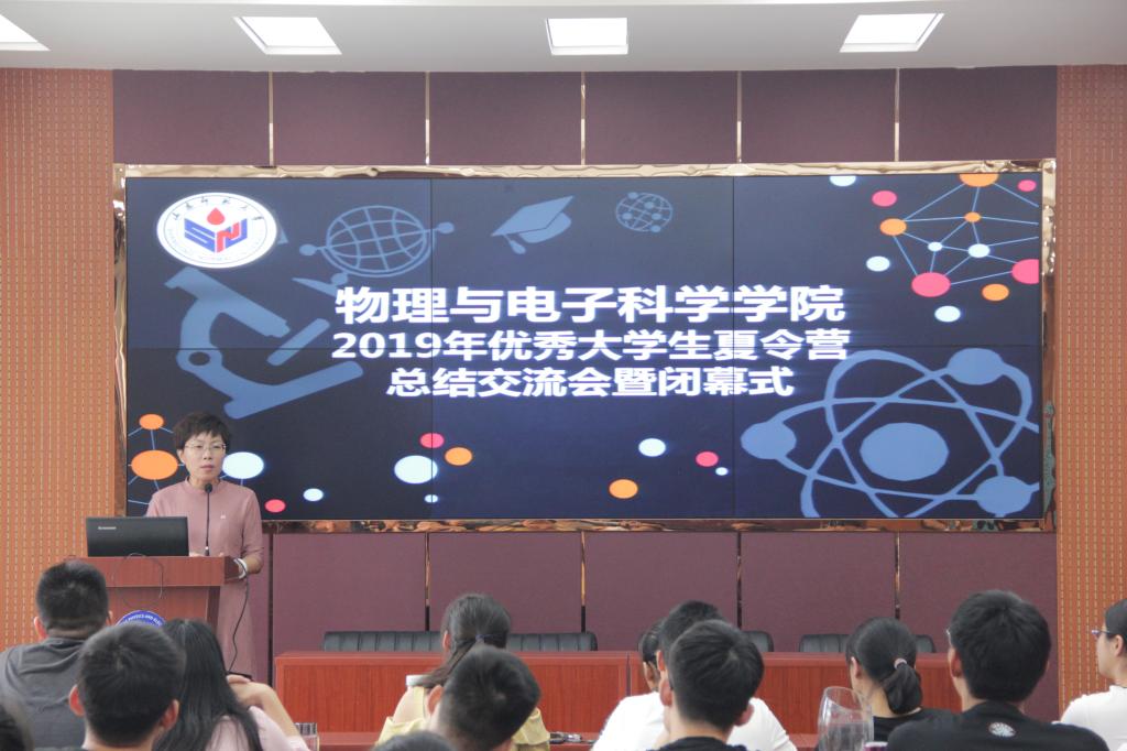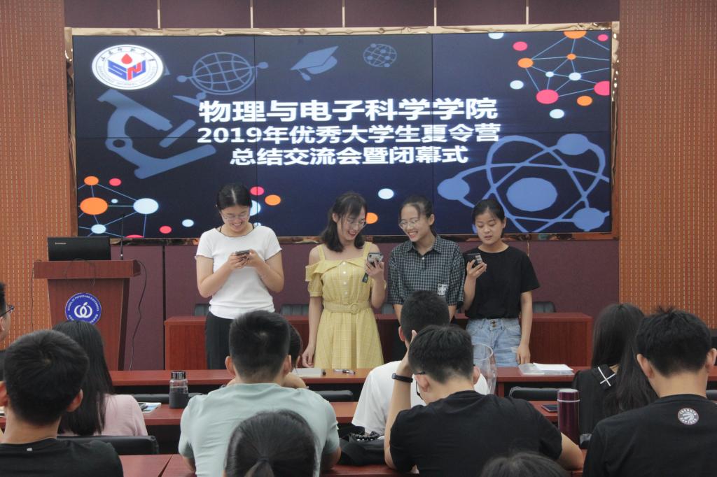 7月10日上午,夏令营总结交流会暨闭幕式在学院报告厅举行。在交流环节,辅导员老师杜军对营员们在山师为期两天的夏令营活动进行了总结,同时鼓励大家回去努力学习,争取在明年的物电学院看到大家。随后三位研究生一年级的代表同营员们进行了交流分享会,针对自己考研的经历向大家传授了方法,并向师弟师妹们分享了充实的研究生生活。最后营员们为大家带来了精彩的节目表演,来自少数民族的同学还为大家带来了他们独特的民歌,在一片欢笑声中迎来了夏令营的闭幕式。