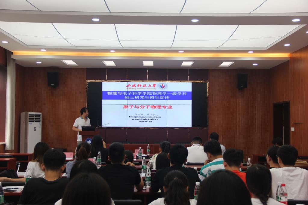 蔡阳健院长对参加此次夏令营的营员们表示了热烈的欢迎,并向在场的营员们介绍了365上市公司悠久的建校历史以及物电学院的成长经历。作为一名老师在学习和科研方面向营员们提出了美好的祝愿,让大家珍惜此次活动,在山师感受到不一样的文化氛围,并且欢迎他们在将来的学习生涯中来到山师求学。孙峰老师代表研究生院欢迎各位营员的到来,同时介绍了山师研究生招生的相关情况及政策,让大家对即将报考的学校有了更清晰的认识和了解。孙老师也对营员们提出了期望,让大家珍惜难得的机会,争取加入物电学院这个优秀的集体。学院各个学位点的负责人老师对学位点的特色、取得的科研成就和该学位点的优秀老师进行了详尽的介绍。