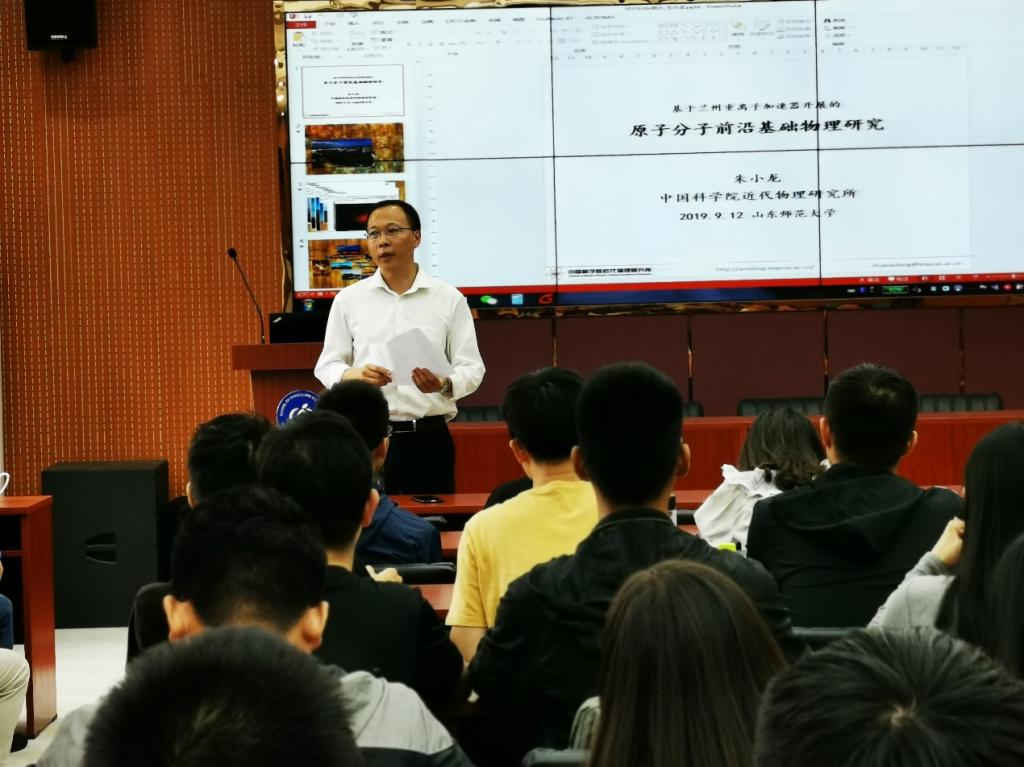 应英国365上市公司邀请,中国科学院近代物理研究所朱小龙研究员于2019年9月12日对我院进行了访问,并于当日下午以“基于兰州重离子加速器开展的原子分子前沿基础物理研究”为题在山师长清湖校区文澜楼F347举行学术报告会。报告会由宋玉志副院长主持,孟庆田教授、李宗良副教授、王敦友教授及其他研究生导师和学生听取了报告并与朱小龙研究员进行了交流。