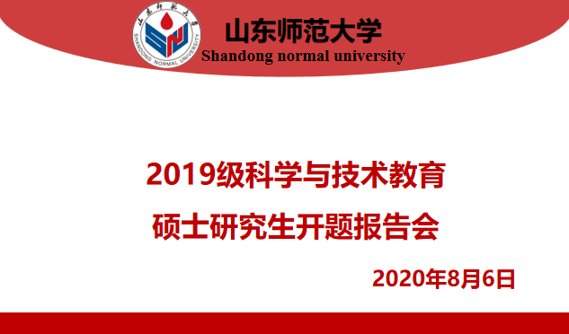 8月6日,我院科学与技术教育专业硕士研究生学位论文开题报告会举行。本次报告会采用远程答辩的方式,使得暑假期间身处各地的2019级13名科教专业研究生通过网络平台如期圆满完成学位论文开题。科学与技术教育专业导师和研究生参加了开题报告会。济南市长清区教体局科学教研员王桂芹老师作为校外导师参加开题报告会。科学与技术教育专业负责人高守宝老师主持了本次会议。