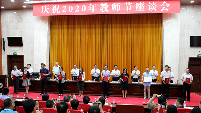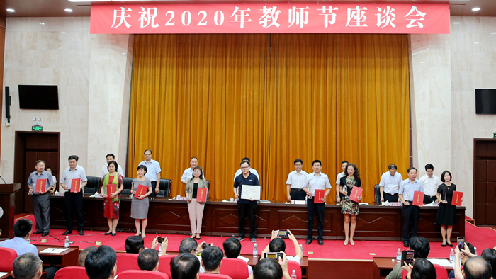 9月10日下午,学校在千佛山校区教学三楼报告厅举行庆祝教师节座谈会,表彰学校2020年度十佳教师、十佳工作者和从教满30年的教职工。省政协副主席、校党委书记唐洲雁出席会议并讲话;校长曾庆良主持会议。校党委副书记张文新,校纪委书记、省监委驻学校监察专员姚东方,副校长王洪禹、满宝元、邢光、王传奎、万光侠出席会议。中层单位主要负责人,教师和学生代表300余人参加会议。