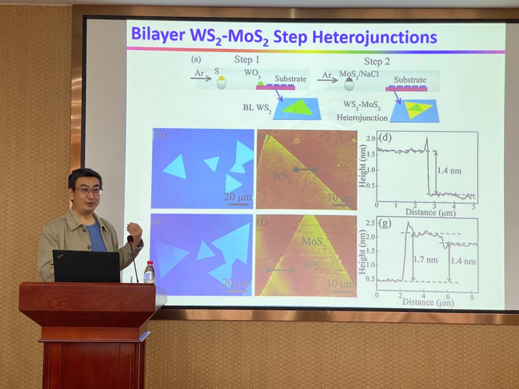 柳忠元教授做了“CVD-Grown Mono And Few-layer W(Mo)S2 And Devices”学术报告。他从二维层状晶体材料这一新兴的材料研究领域,介绍了近几年在单层与少层W(Mo)S2晶体的化学气相沉积(CVD)生长、光电器件方面所做的部分工作。该类二维层状半导体材料蕴含的丰富新物理现象与性能,在光电子器件、催化、储能等领域具有广泛的应用前景。