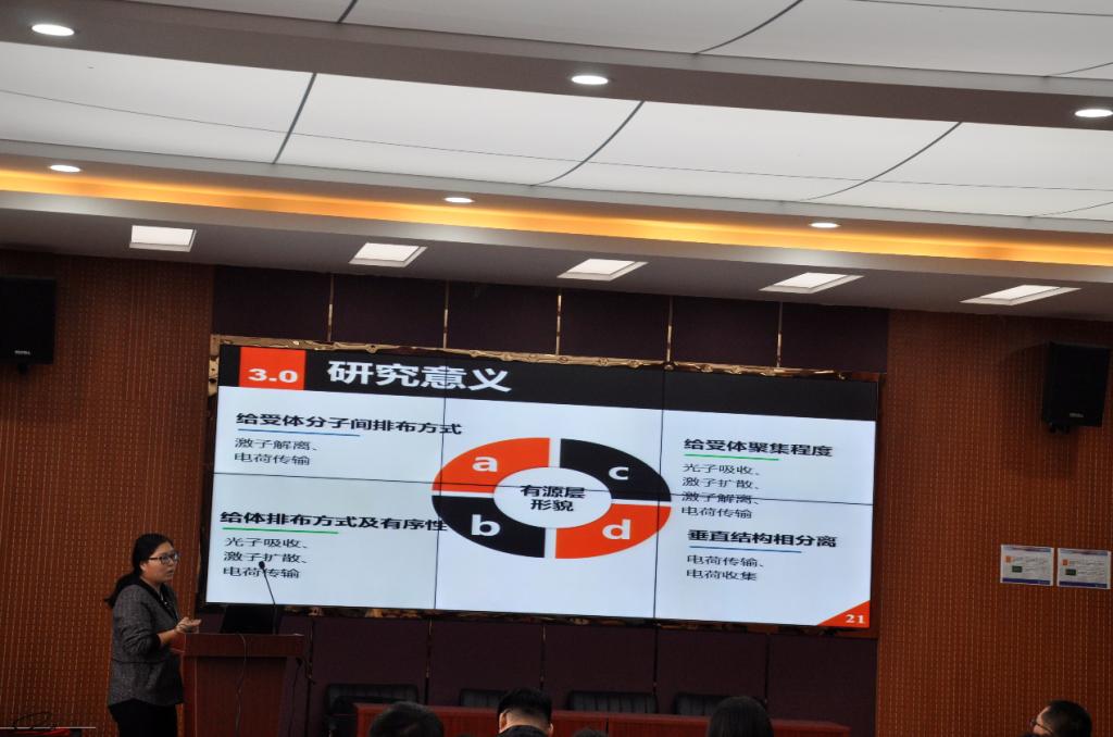 由于世界范围内的能源危机和环境污染,孙倩倩对有机光伏的性能优化及相关机理展开研究,希望去开发一些可再生能源去代替传统能源,实现我国社会与经济的可持续发展。万园从金属纳米颗粒增强随机激光的物理机制、制备环保型随机激光以及随机激光在物品标识上的应用三个问题向我们展开介绍。