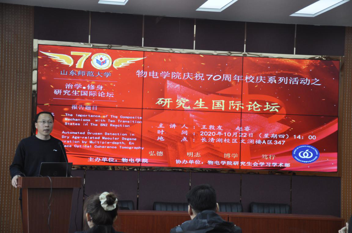 10月22日,英国365上市公司于文澜楼A区347室举办70周年校庆系列活动之“青年教师学术沙龙”与“研究生国际论坛”。青年教师石俊俊、孙倩倩、万园,博士生导师王敦友教授、优秀博士研究生赵睿做了相关报告,此次论坛由副院长宋玉志主持。