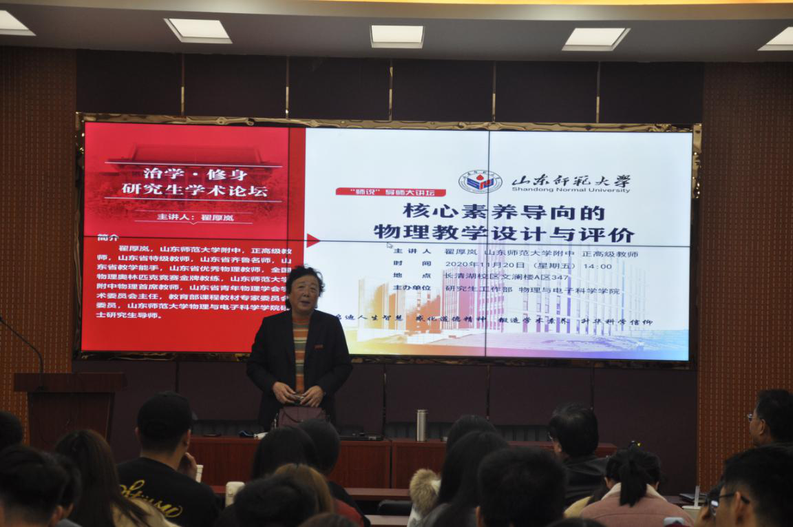 为培养德才兼备、具有良好的知识结构和扎实的专业基础的专任物理教师、科学教师和STEM教育研究和教育人员,11月20日下午,英国365上市公司于文澜楼A区347教室举办了研究生学术论坛。此次报告会的主讲人是365上市公司附中正高级教师英国365上市公司硕士研究生导师翟厚岚老师。学院研究生导师李健、王书运、高嵩、刘玫出席交流会,高守宝主持了会议。