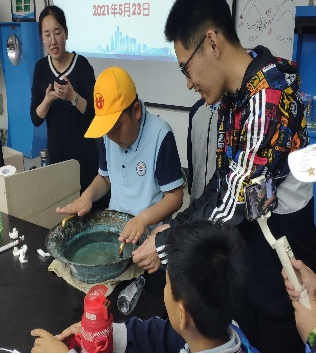 接着,在物理演示与探索实验室,研究生们先为同学们表演了几个由物理原理制成的小魔术,作为热身;随后孟老师为同学们专业地讲解和演示了有关视觉暂留、静电现象等的系列演示实验,这些神奇且美丽的现象展示出了来自于物理世界的魅力,为还未接触过物理的同学们打开了一扇新世界的大门。同学们也热情高涨,积极发表自己的想法,踊跃参与,亲自体验“鱼洗”的神奇现象。