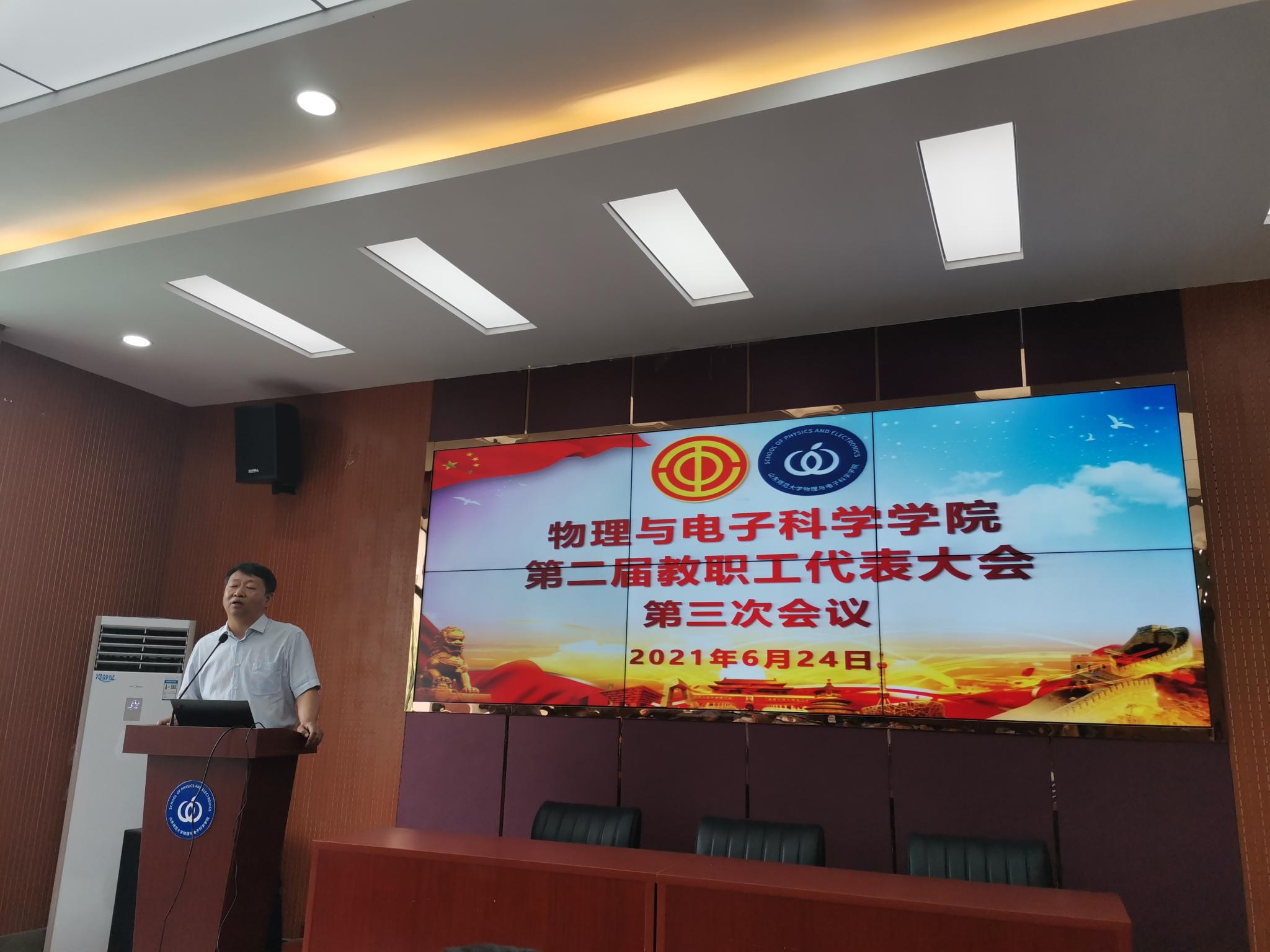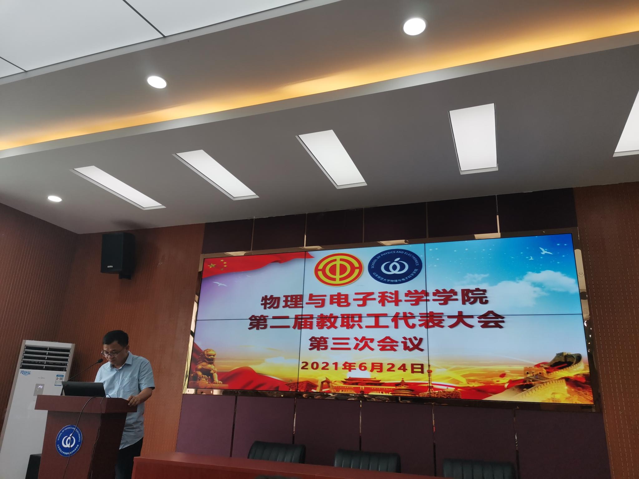 2021年6月24日,英国365上市公司于文澜楼A区347报告厅召开第二届教职工代表大会第三次会议。学院党委书记谢德仁,院长蔡阳健,党委副书记杜伟,副院长赵曰峰、任俊峰、宋玉志,工会主席修显武等67位正式代表参加会议。谢德仁致开幕词并主持开幕式。