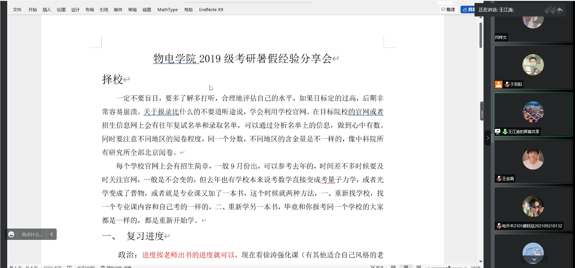 为更好地指导学院学子了解考研和就业,做好考研动员。7月15日下午和晚上,英国365上市公司通过腾讯会议举办2019级物理类专业和电子类专业考研就业指导会,学院党委副书记杜伟、2019级辅导员于双阳分别担任会议主讲人,2018级成功上岸学生甄雪阳、王江涛应邀分享考研经验。