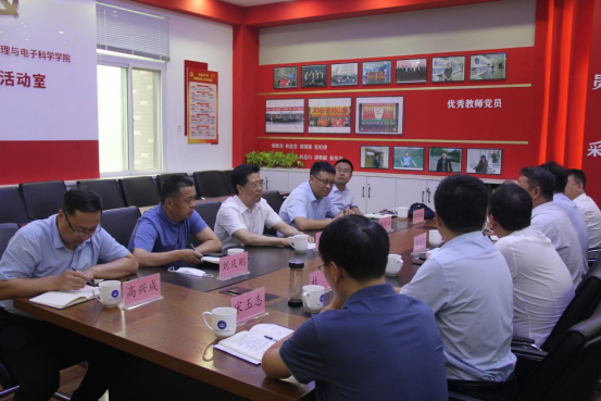 8月22日上午,副校长王传奎到我院检查指导开学工作,并召开座谈会。人力资源处处长魏学江、科学技术处处长李登旺、实验室与设备管理处处长刘庆刚、校长办公室副主任高兴成陪同调研。物电学院领导班子参加了座谈会。