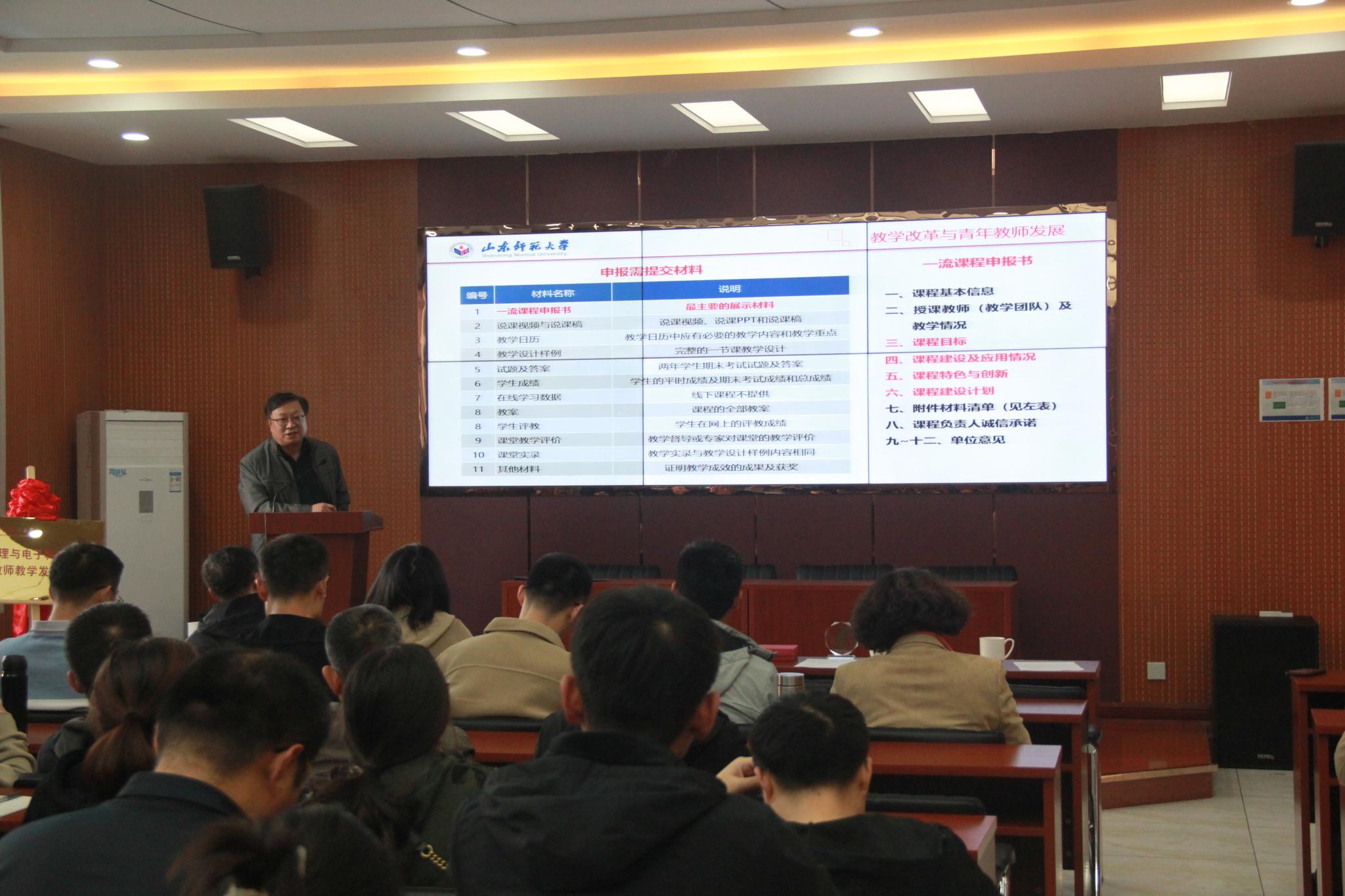 仪式结束后,全国高校教学创新比赛三等奖获得者李健教授作了《从一流课程与教创赛看教学改革和教师发展》的报告。李健从课堂教学改革和教师教学比赛入手,分享了自身的经历和感悟,生动诠释了一位老教师水滴穿石、教书育人的初心。李健鼓励青年教师积极参加教学比赛,提升教学能力,站稳三尺讲台。他真切的情感深深感染着每位听众,让青年教师切身体悟到教学工作的快乐和成就感。