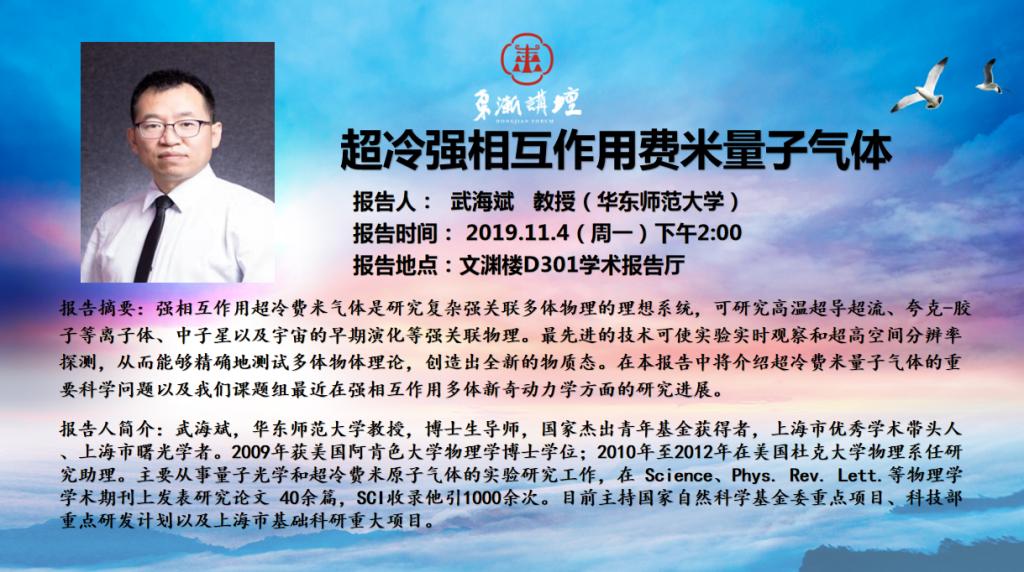 “东渐讲坛”第二十讲:超冷强相互作用费米量子气体 武海斌教授(华东师范大学)
