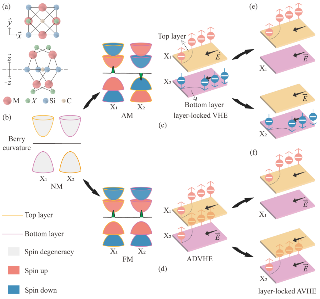 图1 四方单层M2SiCX2中的层锁多谷霍尔效应示意图