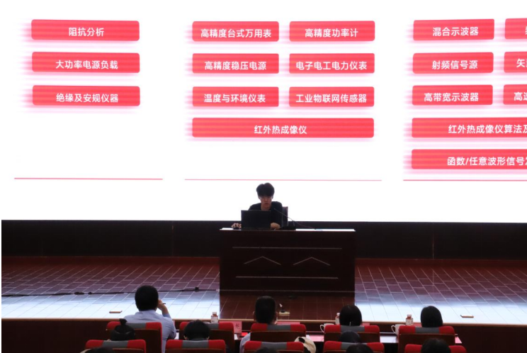 会上,专家们进行了详细且专业的赛事解读。李德春教授首先介绍了中国研究生电子设计竞赛的基本情况,作为教育部学位管理与研究生教育司指导、多部门联合主办的重要赛事,该竞赛在全国高校及科研院所中具有广泛影响力。随后,李德春教授围绕赛事发展历程、参赛要点、评审规则等展开详细解读,深入阐释其在提升研究生科研与创新能力方面的重要作用,为参赛师生提供了清晰的备赛指导与参考。优利德公司孙昕龙经理针对企业命题——利德函数信号发生器进行专题讲解,分享了企业技术储备、核心产品线、奖项设置及技术开发思路方法等内容,为参会师生提供了作品创作思路与资源信息。孙经理凭借丰富的行业经验,剖析命题背后的产业需求与技术趋势,尤其引发参赛同学的浓厚兴趣,让大家对企业命题有了更直观深刻的认识。