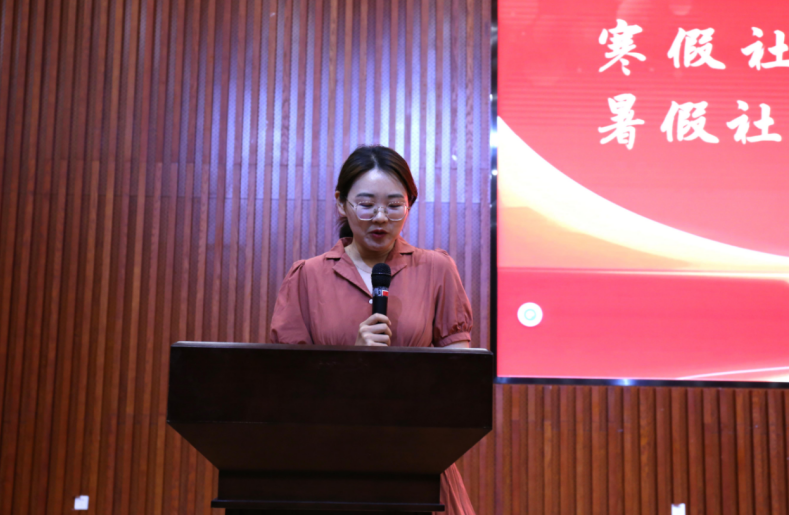 学院团委实践部部长李晓诺详细解读暑期社会实践方案,重点介绍材料规范、申报流程与成果提交要求。方芳在动员讲话中指出,青年学子要将个人成长融入国家发展大局,以红色文化和社会发展为切入点,深入探索当今社会发展导向,实践过程中做好记录,锻炼数据处理与自身专业应用能力。姚方圆表示社会实践是青年学子理解国情、服务社会的重要途径,勉励同学们在实践中锤炼本领、增长才干。苏恒则结合以往实践案例,强调团队协作与安全意识的重要性,鼓励同学们在基层一线"多听、多看、多思考",用专业知识解决实际问题。