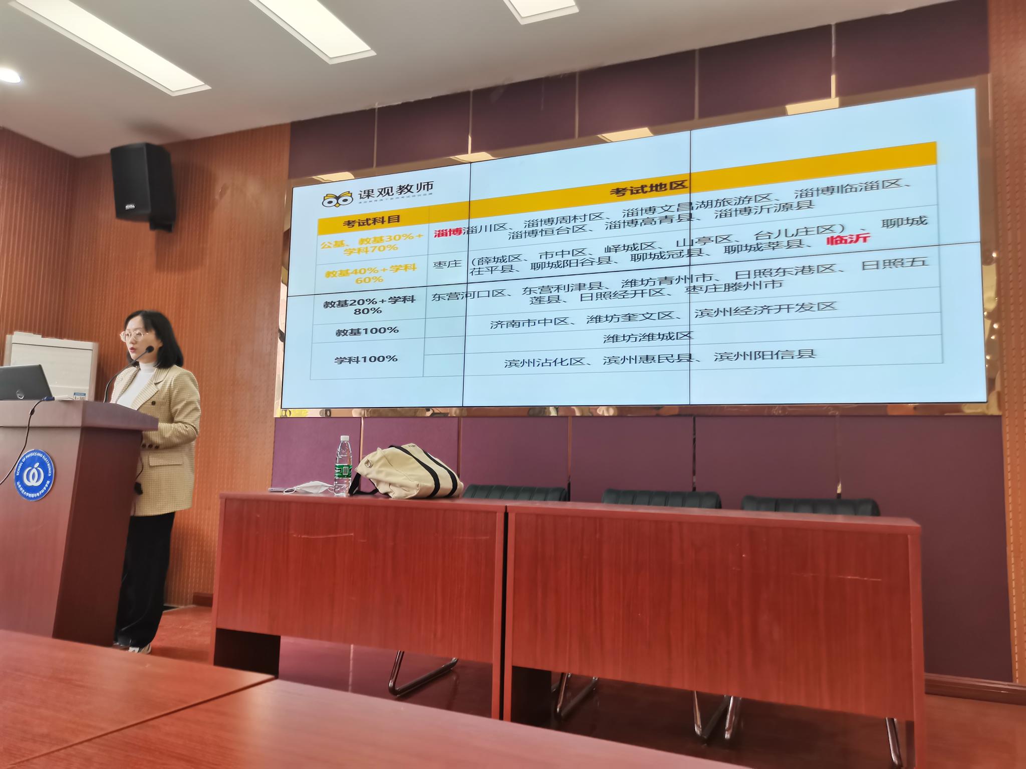 为提高同学们的备考积极性,提高对教师编备考了解度,帮助同学们更好地做出备考及发展规划,4月13日,英国365上市公司于文澜楼A区F347会议室举办第四期启航论坛系列讲座——“科学备考 不走弯路”教师编备考指导讲座。本次指导会由物电学院主办,北京课观教育科技有限公司协办,其公司年度优秀讲师李梦雪担任主讲人,17级辅导员方芳和姚方圆出席,17级60名同学参加。