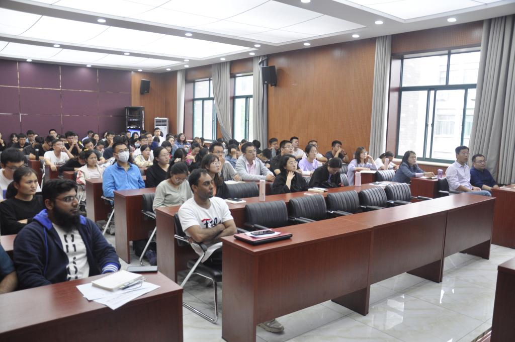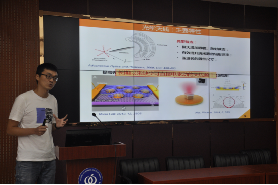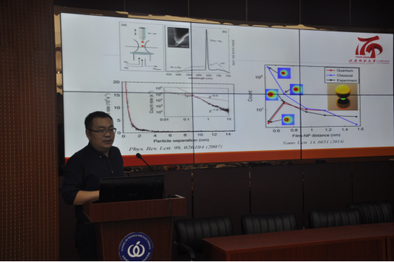论坛上,院长蔡阳健首先向同学们介绍了四位报告人的概况。范建忠老师从有机发光二极管的研究背景讲起,向大家介绍了延迟荧光分子发光性质的理论研究;何小波老师首先介绍了光学天线的基本概念和主要特性,发现长期以来缺少可直接电驱动的天线源,进而提出了电驱动光学天线方面的研究,宁廷银老师讲解了非局域表面等离激光体系中非线性光学方面的研究,包括非局域效应影响的谐波产生和光学双稳态;巴基斯坦留学生萨拉博士以“Introduction to Nanomaterials and Photo-detector”为题展开介绍,并分享了自己在海外的学习生活。结束后,老师与同学们展开了深入的交流并耐心地解答了同学们提出的问题,鼓励同学们读万卷书,行万里路,不断地完善充实自我。