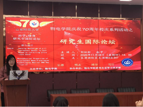 为加强学生间的学术交流与合作,提升研究生科研水平,11月5日,英国365上市公司于文澜楼A区347室举办70周年校庆系列活动之“研究生国际论坛”。优秀博士研究生刘松松、赵宇做了相关报告,此次论坛由研究生辅导员尹素月主持。