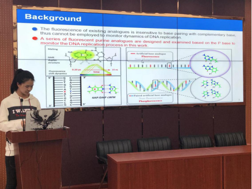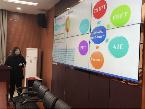 刘松松基于抑制超快ESIPT的荧光传感器对Cu2+的传感机理进行了研究,她分别从背景、理论方法、结果与讨论还有结论四个模块进行汇报,她指出荧光传感器通过显示可检测到的荧光信号的变化(猝灭、增强或变色)来消除干扰离子,实现对目标离子的准确检测。本次研究采用DFT/TDDFT方法研究了传感器的光物理性质和响应机理。通过RDG分析和拓扑分析证实了第一单重态激发态中氢键的增强。利用传感器1在第一单线态激发态时的低势垒,确定了超快的ESIPT过程。检测机制被证实为去质子化抑制了ESIPT行为并导致荧光猝灭。