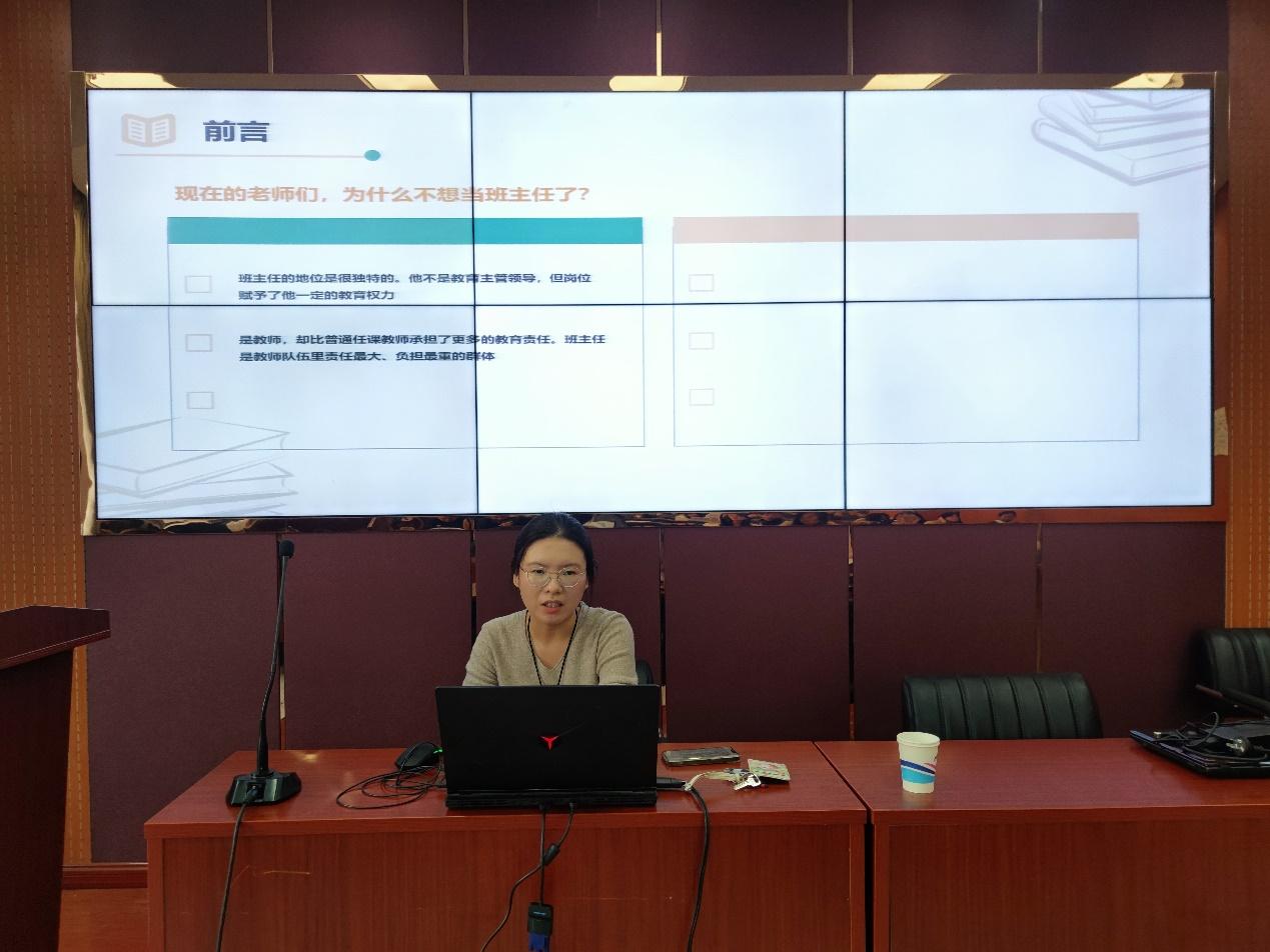 本次讲座李雅若老师从前言、班主任的工作范围、班主任的角色和类型以及班主任的工作方法等四个方面介绍了班主任在教学活动中的特殊地位以及班主任工作的重要性,详细地介绍了班主任在日常工作中可能会遇到的问题并展示了几种比较有实践意义的解决方案。李老师的精彩讲解引起了学生们的积极响应,使他们对班主任工作的意义与价值有了更加深刻的认识与感悟。