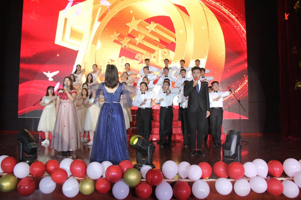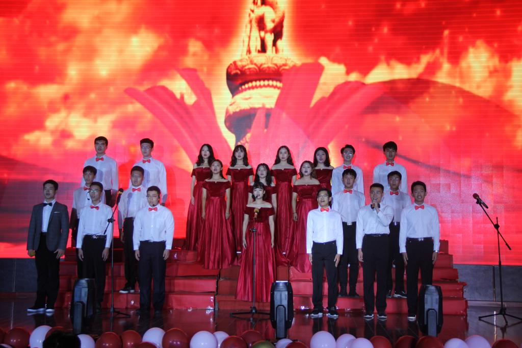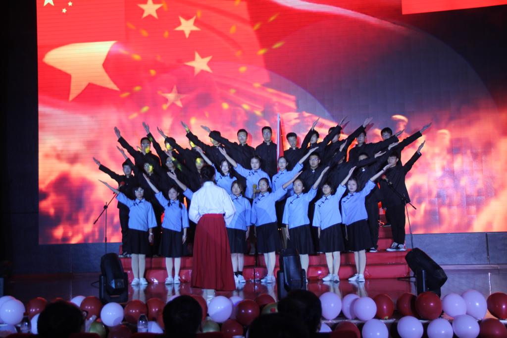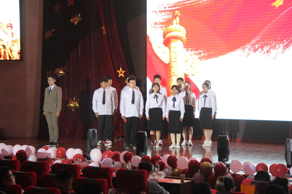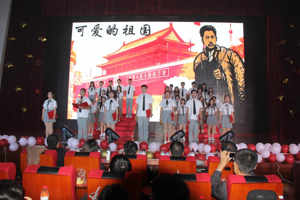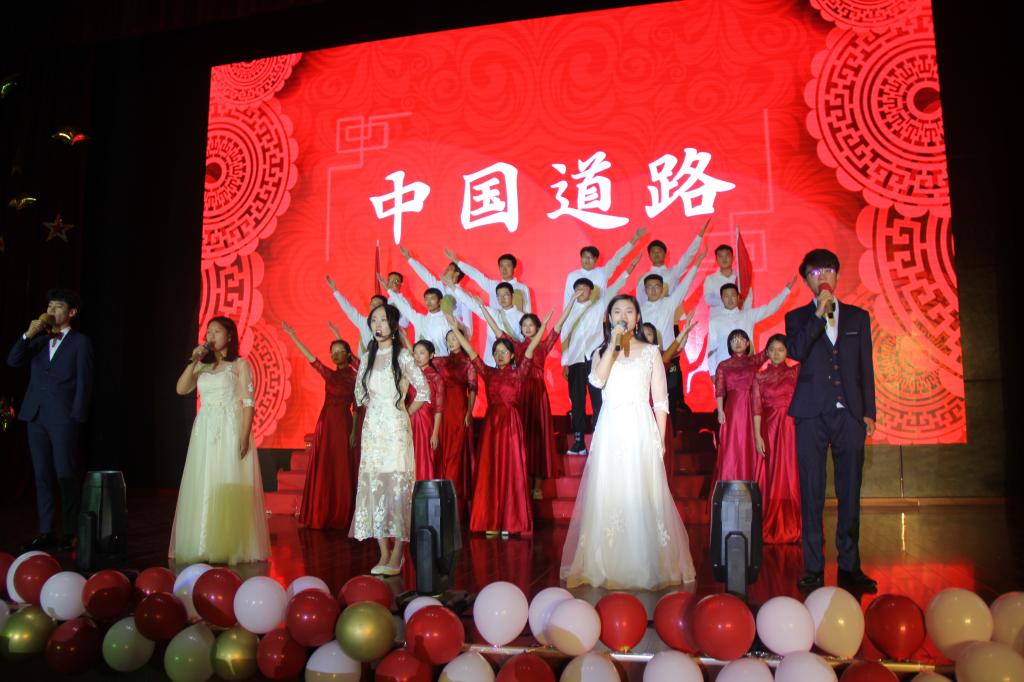 晚会分为“不忘初心”,“砥砺前行”以及“时代新篇”三个篇章。开场舞《礼仪之邦》渲染了庄严的气氛,用大气恢弘的舞曲拉开了晚会的序幕。紧随而来的合唱《七律长征》迅速将观众带入了角色,共同感受万里长征的艰辛,接受精神的洗礼。2019级辅导员于双阳和班团们带来的情景剧《乳娘》点燃了晚会现场的气氛。演员们饱含深情的表演,把乳娘的大爱精神演绎的淋漓尽致,深深感染了在场的每一位同学,激发出同学们不忘初心,牢记历史,让红色基因世代相传的信念。《祖国啊,我亲爱的祖国》《你像雪花天上来》《心在最前沿》等深情朗诵表达了学子对祖国和烈士们的热爱,赢得了观众的阵阵掌声。八位新疆生同学带来充满异域风情的《新疆舞》,令观众眼前一亮。晚会期间,一位“特邀小嘉宾”的到场吸引了所有人的目光,他用稚嫩但坚定的歌喉带来一曲《强军战歌》,赢得了经久不息的掌声。最后,由2018级物联培带来的合唱《少年强》再次点明晚会主题,激励同学们用自己的青春向祖国告白,为实现中华民族伟大复兴的中国梦而不懈奋斗。