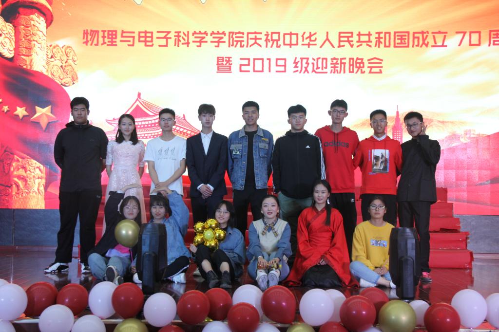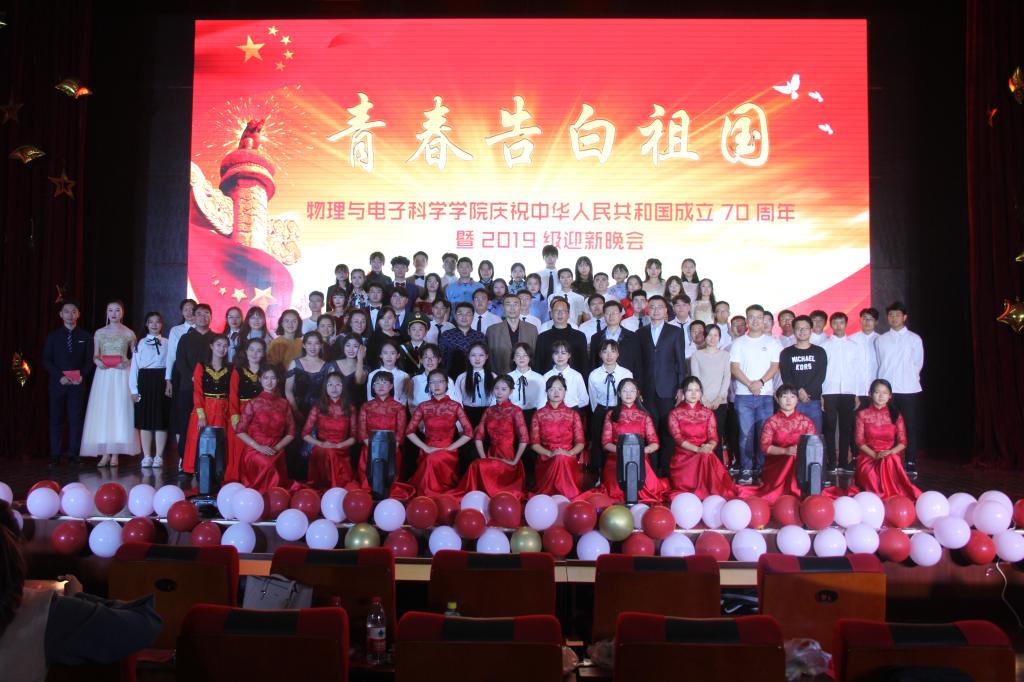 10月24日,英国365上市公司于长清湖校区树惠堂举办“青春告白祖国”庆祝中华人民共和国成立70周年暨2019级迎新晚会。学校研究生工作部副部长王庆荣、英国365上市公司院长蔡阳健,党委副书记杜伟,副院长赵曰峰、任俊峰、宋玉志,学院教师代表及全体辅导员出席活动,2019级300余名新生观看晚会。