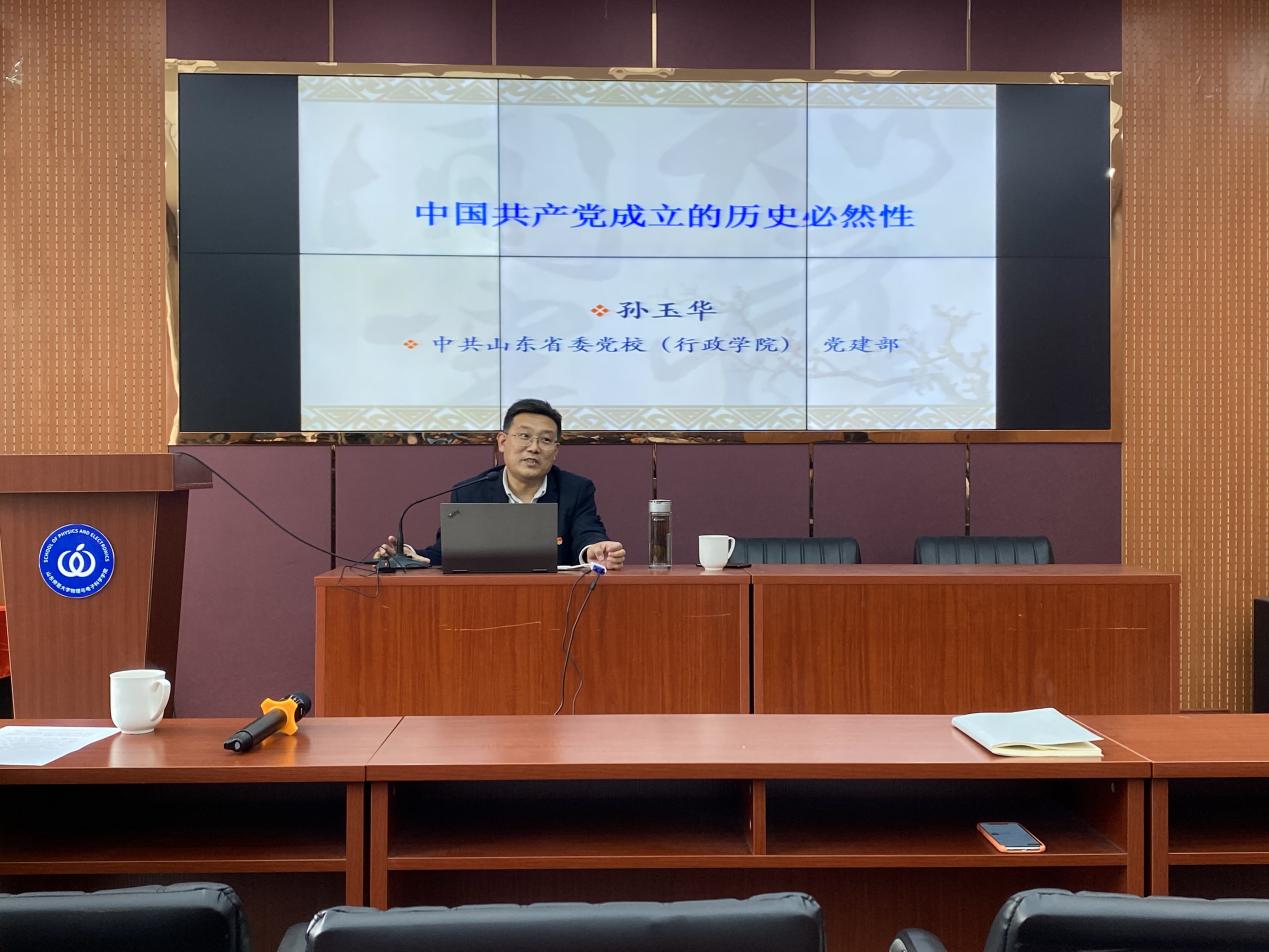 4月1日下午,英国365上市公司于文澜楼F347报告厅举行党史学习教育专场报告,中共山东省委党校(行政学院)党建部副教授孙玉华受邀作“中国共产党成立的历史必然性”报告。报告会由党委书记谢德仁主持,学院党委委员、各党支部支委会成员及部分教工党员参加了报告会。