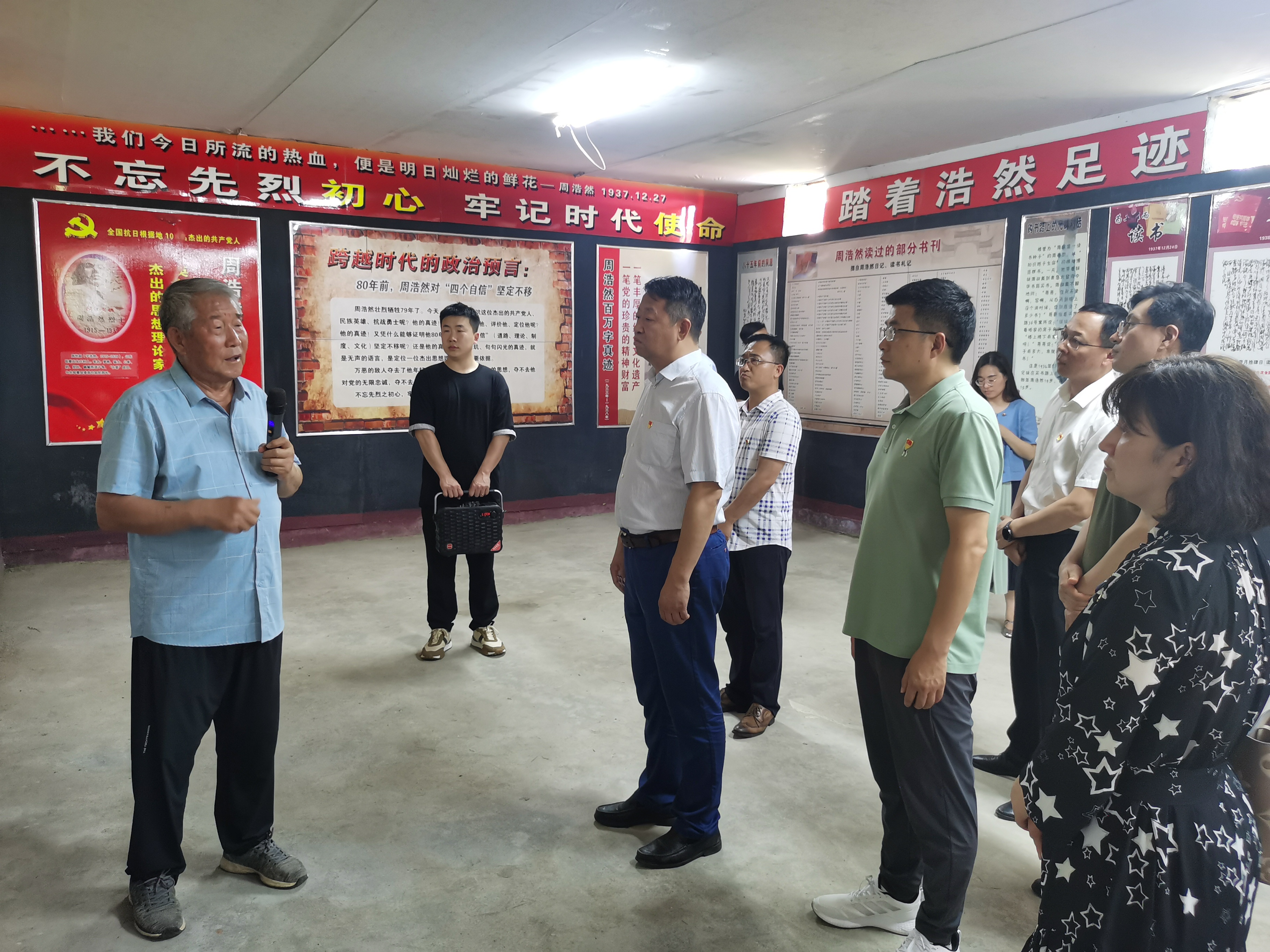 调研活动结束后,学院一行赴青岛市红色教育基地——周浩然文化园实地接受党性教育。在文化园园长、周浩然烈士的弟弟周法廉先生带领下参观了周浩然烈士纪念馆,瞻仰了烈士的诗词、文章、日记手稿等作品,深刻学习了周浩然烈士的感人事迹以及“浩然精神”的丰富内涵。