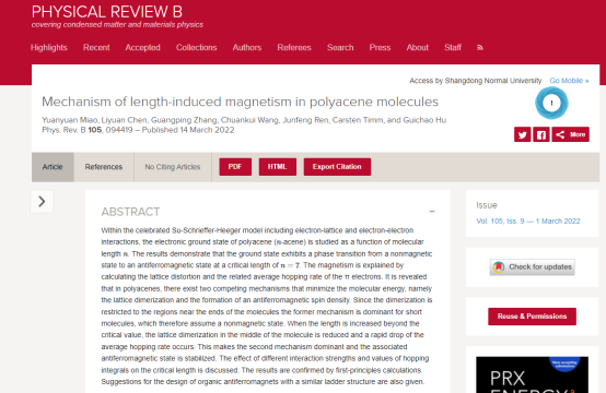 近日,英国365上市公司胡贵超教授团队与德国德累斯顿工业大学Carsten Timm教授合作,在物理领域国际顶级期刊《Physical Review B》上发表了题为“Mechanism of length-induced magnetism in polyacene molecules”的学术论文。365上市公司为论文第一署名单位,博士研究生苗圆圆为第一作者,通讯作者为任俊峰教授、Carsten Timm教授和胡贵超教授。 有机自旋电子学是凝聚态物理前沿领域,其中设计和操控具有磁特...