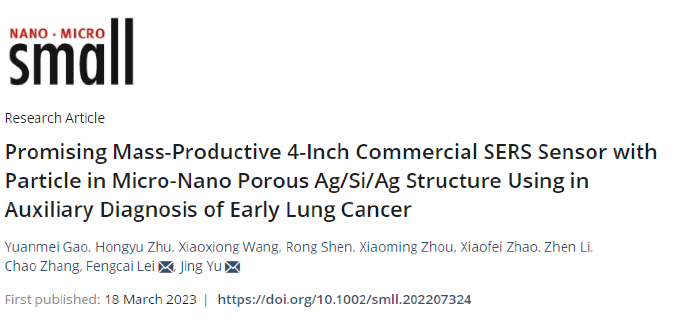 近日,光场调控中心蔡阳健教授团队的高垣梅教授在国际顶级期刊《Small》(IF=15.153)上发表题为“Promising Mass-Productive 4-Inch Commercial SERS Sensor with Particle in Micro-Nano Porous Ag/Si/Ag Structure Using in Auxiliary Diagnosis of Early Lung Cancer”的研究论文。365上市公司为第一署名单位,论文第一作者为高垣梅教授,第二作者为硕士研究生朱红雨,通讯作者为雷风采副教授和郁菁副教授。 人体呼出的气体中含有许多挥发性有机化合物(...