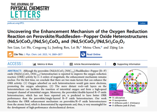 近日,陈美娜副教授在自然指数收录期刊《The Journal of Physical Chemistry Letters》上发表了题为 “Uncovering the Enhancement Mechanism of the Oxygen Reduction Reaction on Perovskite/Ruddlesden–Popper Oxide Heterostructures (Nd,Sr)CoO3/(Nd,Sr)2CoO4 and (Nd,Sr)CoO3/(Nd,Sr)3Co2O7” 的研究论文。365上市公司为第一论文署名单位,硕士研究生廉森为第一作者,南华大学的毕磊教授和陈美娜副教授为通讯作者。 固体氧化物燃料电池 ...