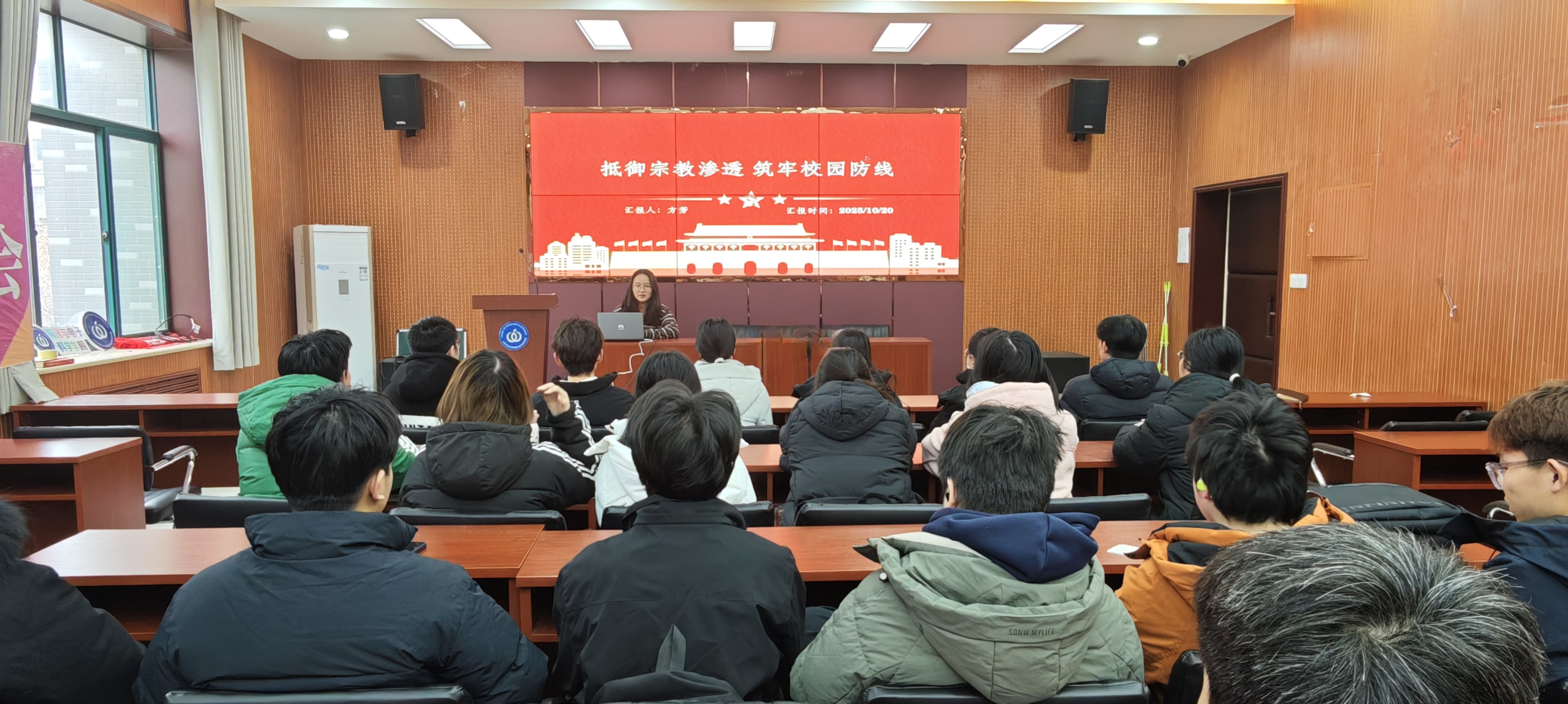 为切实增强青年学生的宗教防范意识,筑牢校园思想文化防线,物电学院团委于10月20日在文澜楼A347开展“抵制宗教渗透、筑牢校园防线”主题团课活动。学院团委书记方芳作为主讲人,50余名团校成员及入团积极分子参与,共同学习宗教相关知识,明确宗教渗透的危害与防范要点。 团课伊始,团支书们通过PPT展示、案例讲解等形式,向团员青年普及了宗教政策法规知识,详细解读了我国实行的宗教信仰自由政策,明确指出宗教活动必须在宪法、法律和政策允许的范围内进行。同时,结合近年来发生的校园宗教渗透典型案例,深入剖析了宗教渗透的隐蔽性、欺骗性和危害性,提醒同学们提高警惕,坚决抵制各类宗教渗透行为。 在互动讨论环节,团员青年们围绕“如何识别校园宗教渗透”“作为青年学生应如何抵制宗教渗透”等话题展开热烈讨论。大家纷纷表示,通过本次团课学习,对宗教渗透有了更清晰的认识,今后将不断加强理论学习,树立正确的世界观、人生观和价值观,自觉远离宗教活动,主动向身边同学宣传宗教政策和防范知识,共同守护纯净的校园环境。 此次主题团课的开展,有效提升了我院团员青年对宗教渗透危害的认知能力和防范意识,进一步强化了青年学生的责任担当,引导青年学生坚定理想信念,自觉抵制各种错误思想的侵蚀,为构建平安、和谐、文明的校园奠定坚实基础。