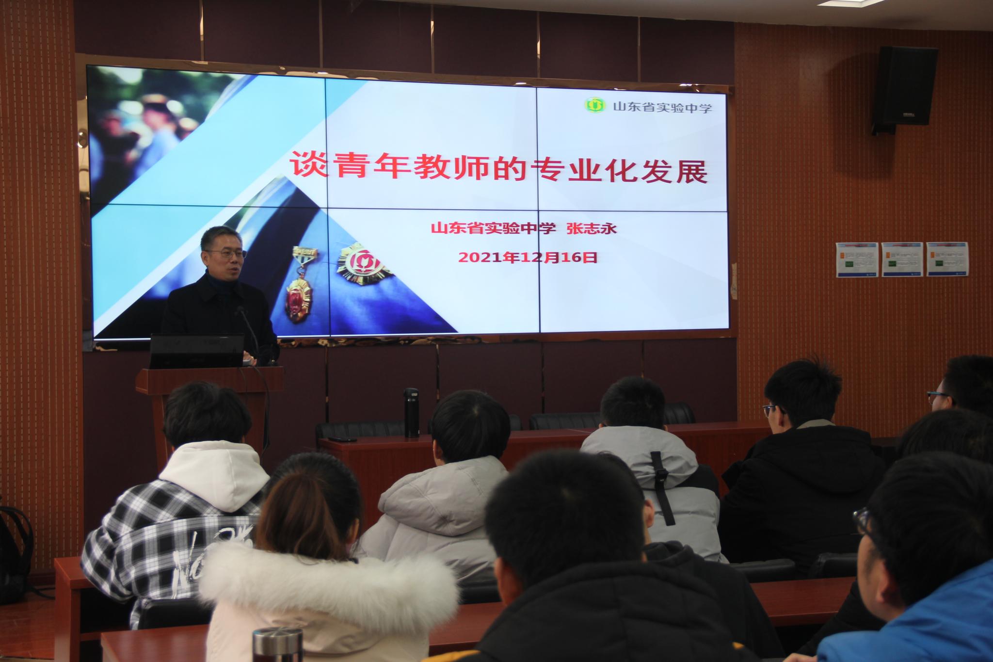 为推动师范类专业人才培养改革,提升专业人才培养质量。12月16日下午,英国365上市公司于文澜楼A区F347会议室开展“谈青年教师的专业发展”教师专业发展与生涯规划系列讲座,山东省实验中学教导处主任、高级教师、济南市教育系统党员示范岗先进个人张志永担任讲座主讲人。本次讲座由学院副院长赵曰峰主持,百余名学生到场聆听。赵曰峰作开场发言。他表示,一直以来,学院坚持以就业育人为主线,高度重视对学生明晰职业规划的...