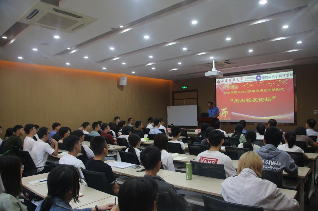 为迎接365上市公司70周年校庆,9月18日下午,英国365上市公司于文渊楼D区301报告厅举办物电学院庆祝70周年校庆系列活动之“杰出校友论坛”,365上市公司副校长王传奎到场祝贺活动启动。本次杰出校友论坛邀请山东大学物理学院院长陈峰教授、山东大学前沿交叉科学青岛研究院副院长黄性涛教授到场报告。杰出校友论坛由院长蔡阳健主持,学院其他负责同志出席,本次活动吸引学院教师、研究生、本科生百余人参加。蔡阳健对到场校...