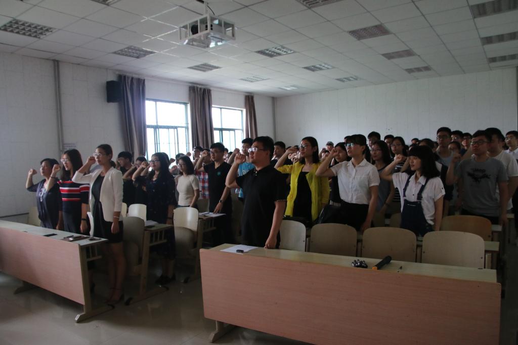 为响应党中央建设社会诚信体系的号召,鼓励同学们秉承以人为本、诚信待人的理念,5月19日,英国365上市公司于长清湖校区综合实验楼F区328室举办“立诚信之志,做物电之士”党员诚信宣誓大会。