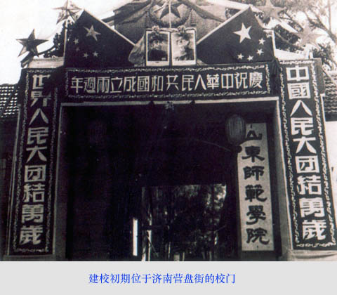 辉煌历程(二)--摘自2010年学院院史 之初创时期(1950年—1957年) 1950年9月,中共中央华东局决定,华东大学与山东大学合并,原华东大学教育学院的人员与山东省行政干校调出的部分人员,在济南城南营盘街原济南蚕桑...