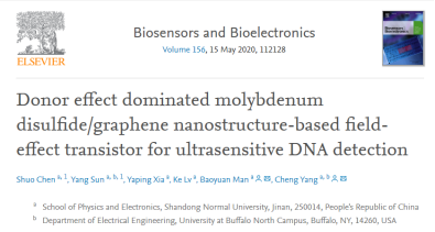 近日,我院本科生和研究生合作共同第一作者的文章在国际TOP期刊Biosensors &Bioelectronics上以Article形式在线发表,相关工作是满宝元教授团队杨诚课题组一年内的第二篇Biosensors &Bioelectronics文章,陈朔(本科生)和孙扬(研究生)为论文第一作者,满宝元教授、杨诚副教授为论文通讯作者。 FET生物传感器通过检测待测分子吸附到沟道材料表面时引起的电荷或电场的改变获得可供检测的电学信号,在DNA碱基变异、杂交检测等方...
